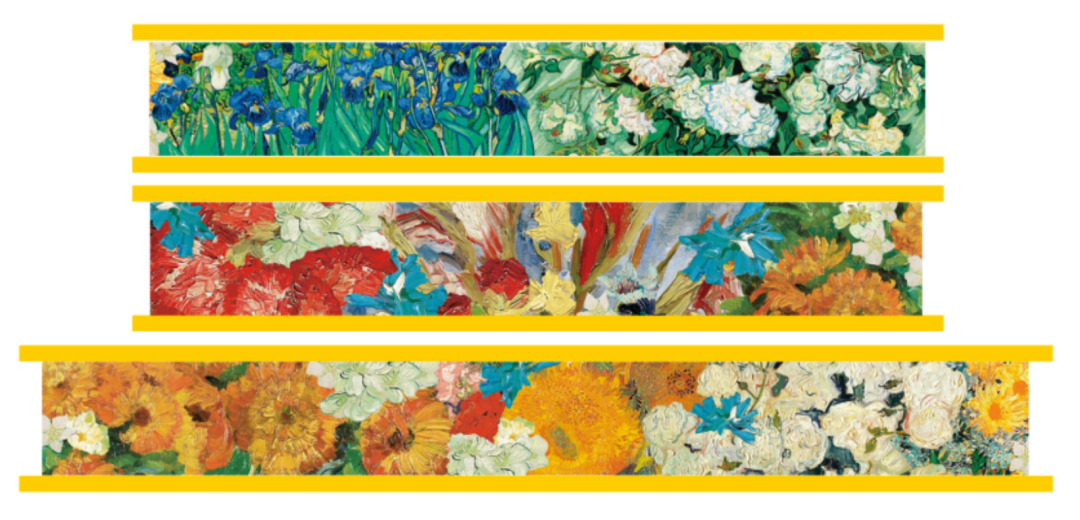 三面刷边,《凡·高守望星空》采用花卉组合三口刷边,宛如春日里盛放的花朵,活力满满。