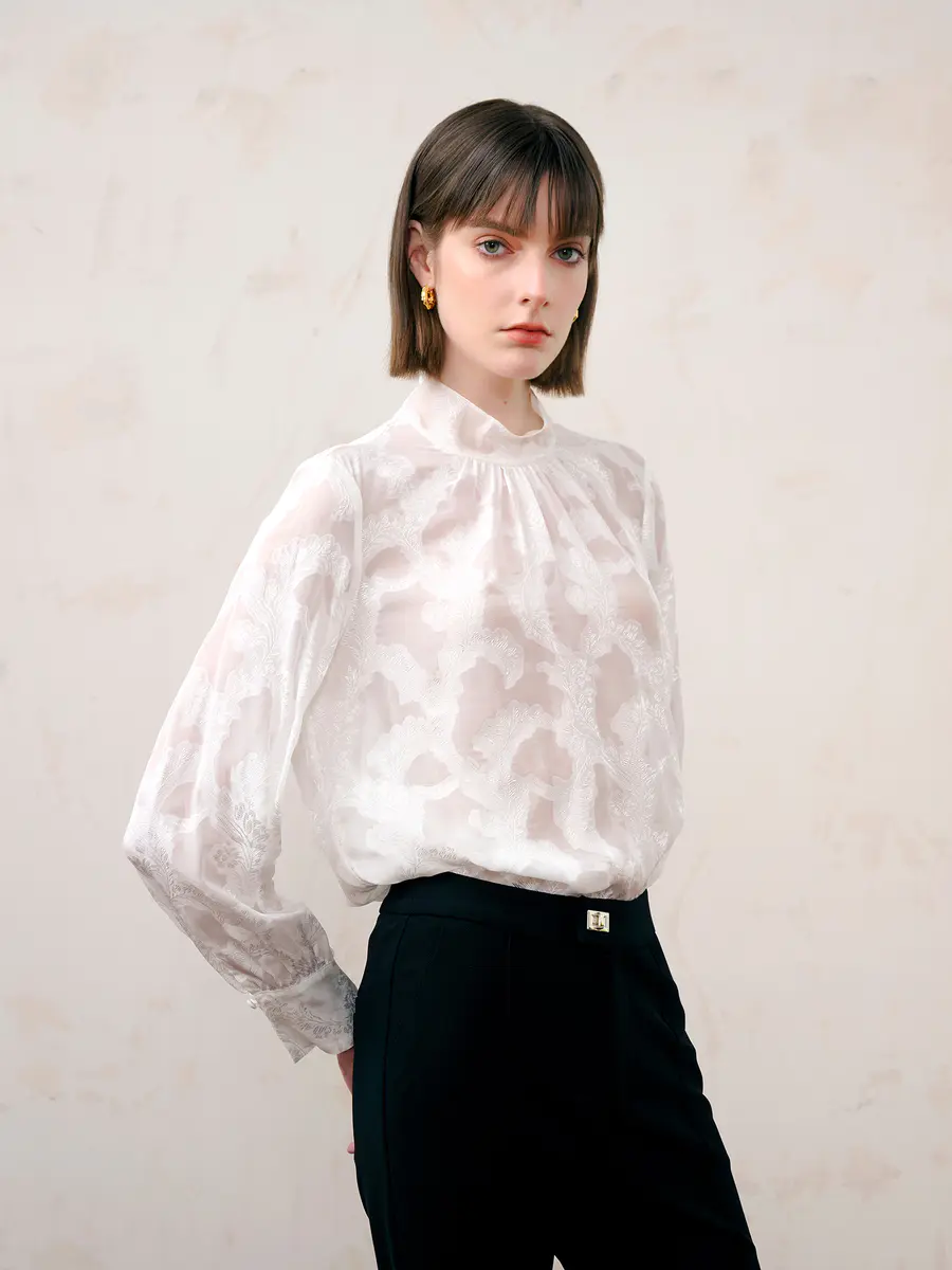 法式复古桑蚕丝衬衫|个性剪花透视