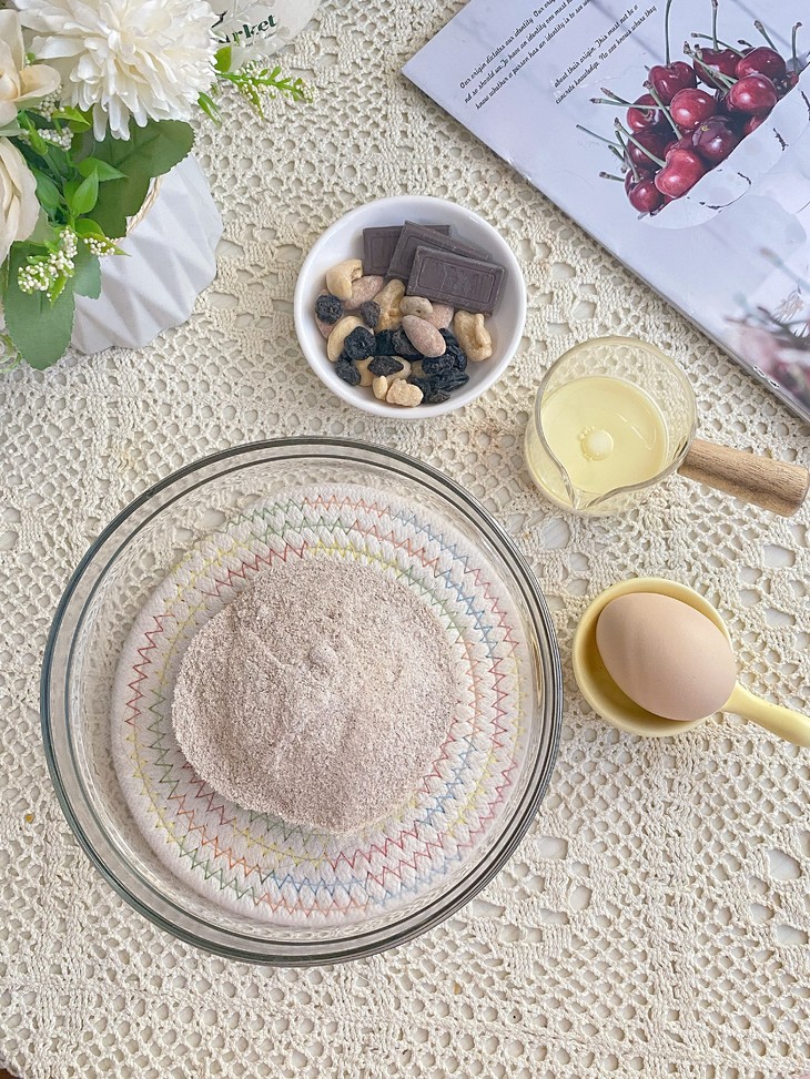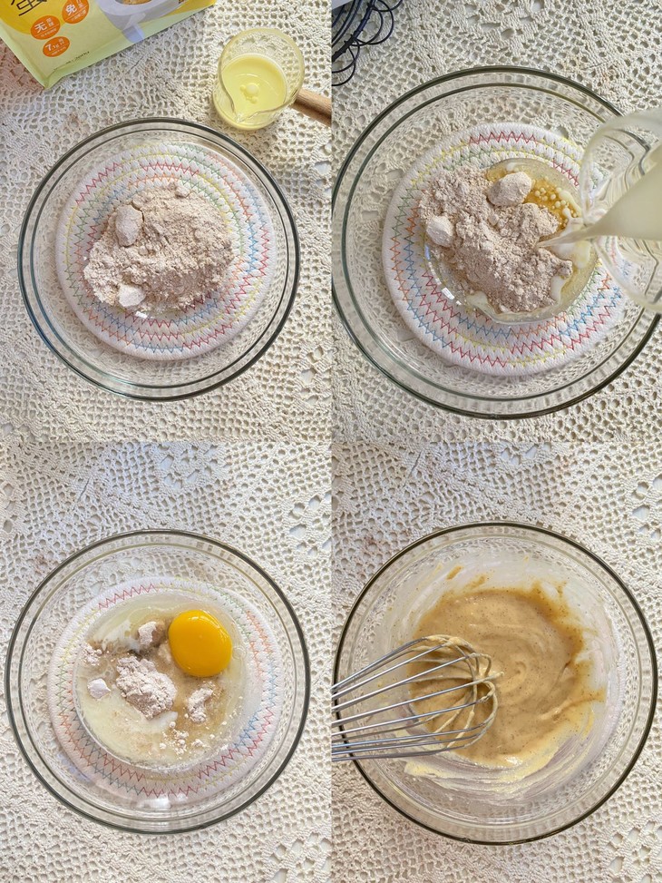1、将低筋面粉、鸡蛋、牛奶、食用油、细砂糖倒入碗中,搅拌均匀