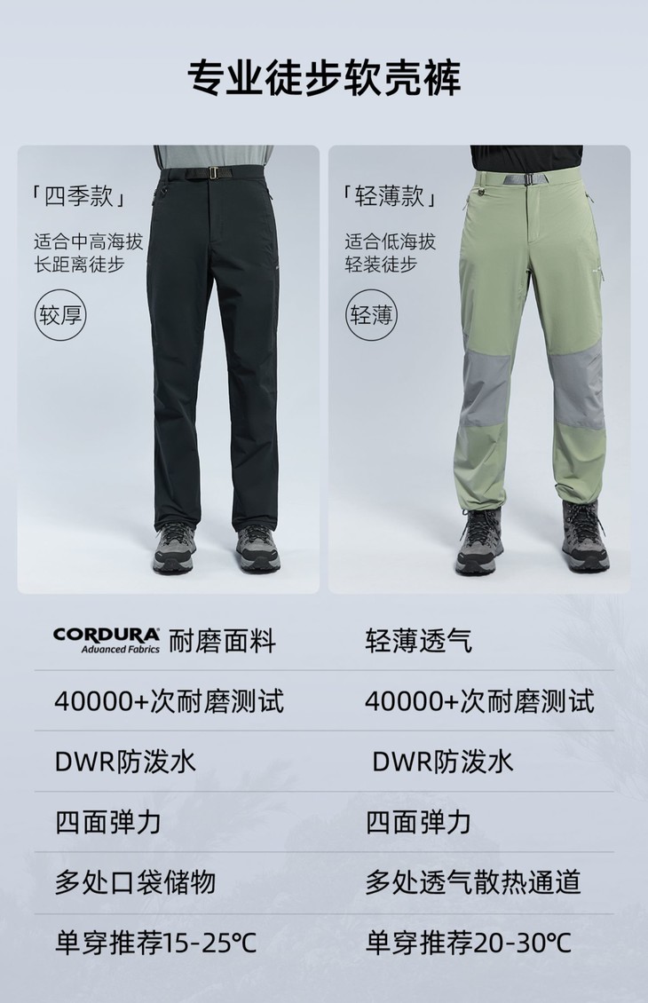 各方面都比较均衡,没有明显的短板,但是也没有超配置的一款软壳裤,对比凯乐石显得很实惠,对比一般的品牌颜色会有点新意。