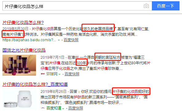 你可以上网搜搜,片仔癀化妆品怎么样?回答都在说“老国货”“宫廷配方”“能美白淡斑去痘印”。