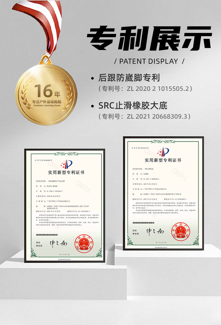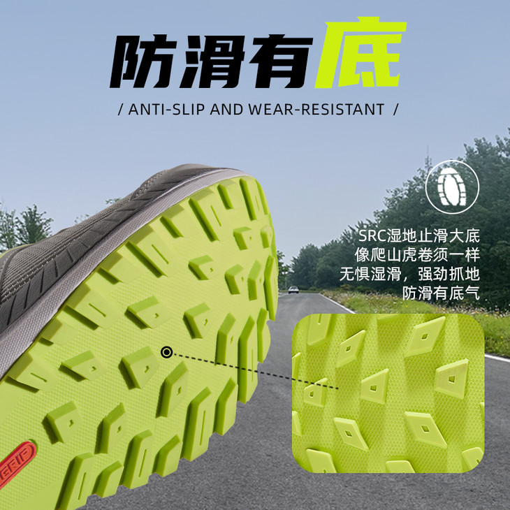 接下来是它的【防滑有底气】!国家专利级SRC湿地止滑大底,就像爬山虎的卷须一样,牢牢抓住地面,无惧湿滑路况。无论是雨后泥泞的小路,还是光滑的岩石表面,都能稳稳站住脚跟。