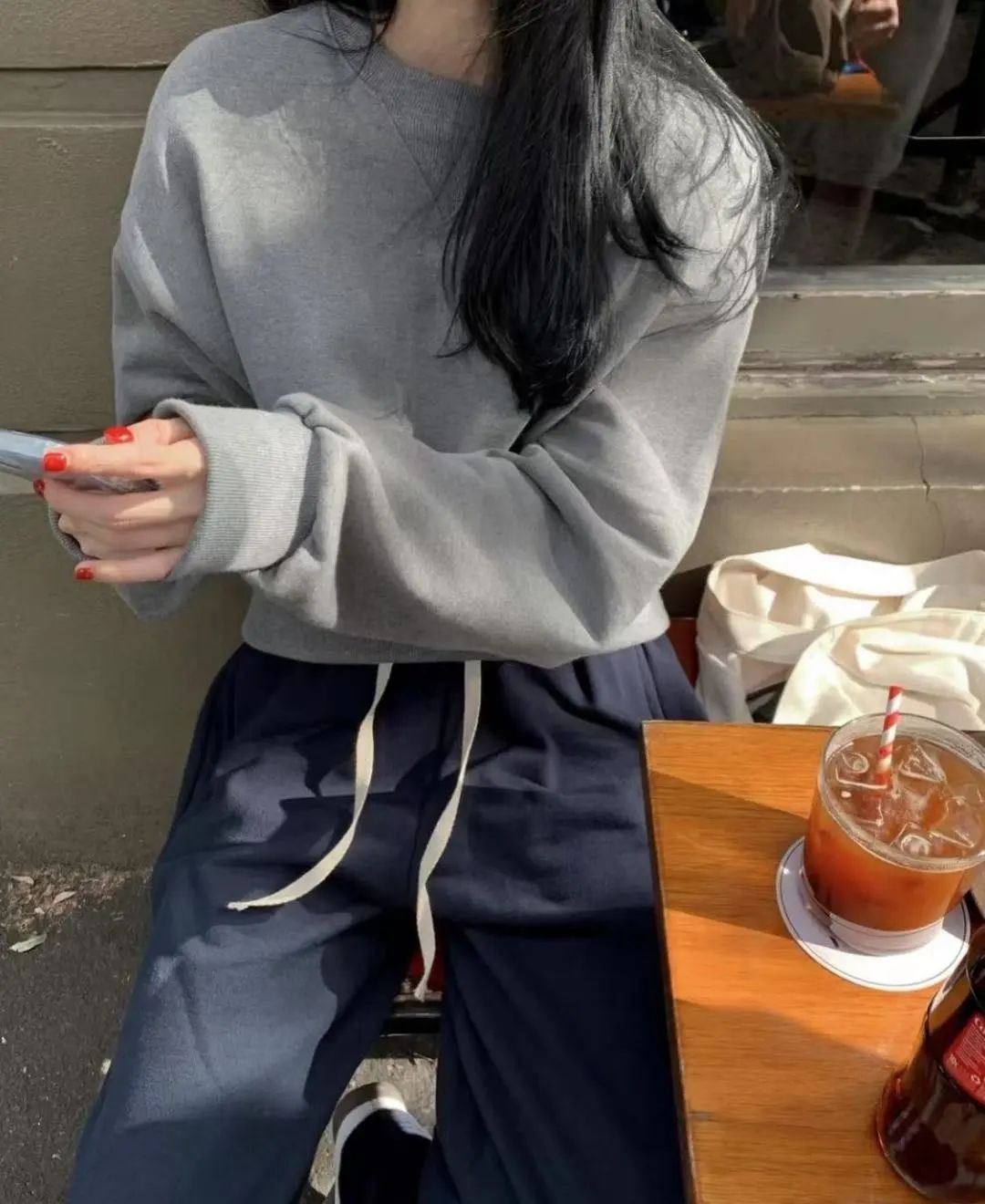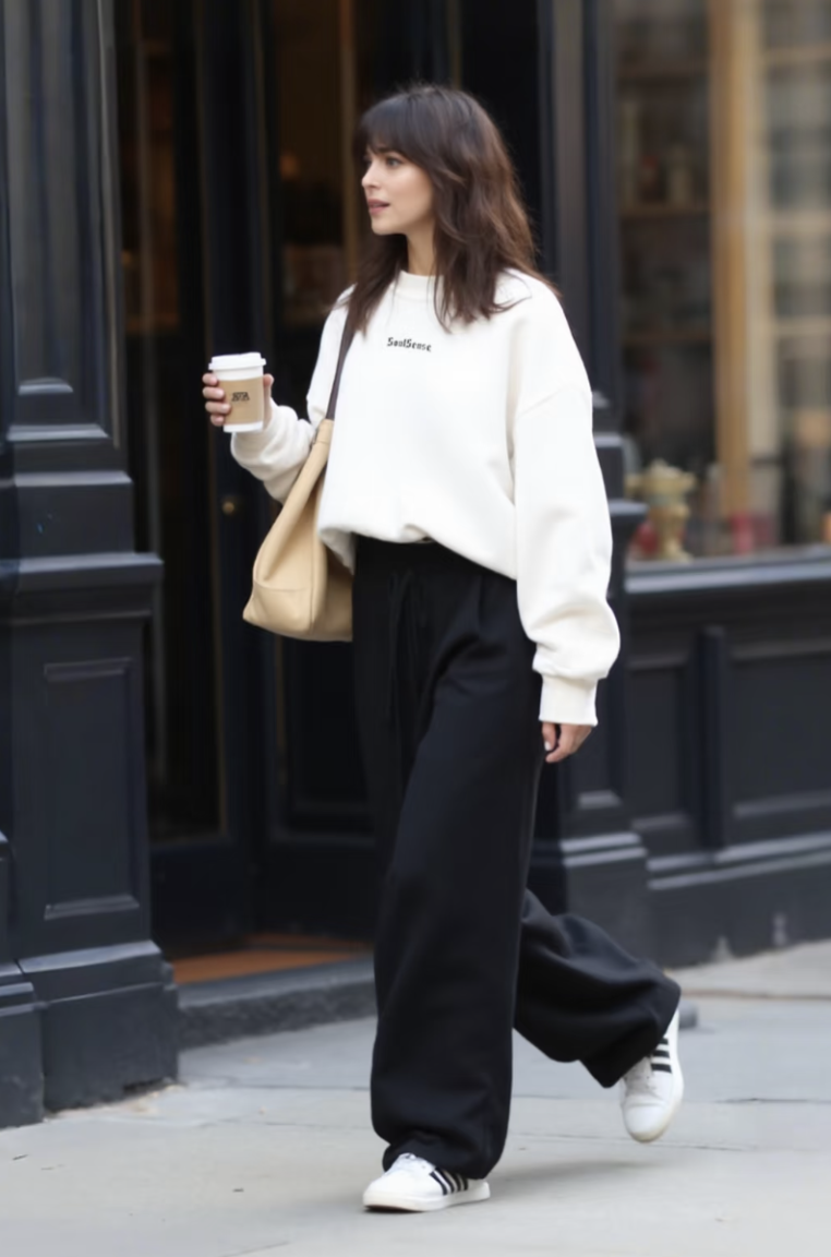 对女士来说,搭配深色直筒裤和帆布鞋,再加上一个简约的挎包,整体显得干净利落,适合日常通勤或校园风。