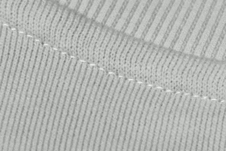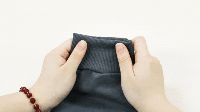 而我们的领口采用不易变形的双层高密度螺纹领,细密的排线看起来非常扎实,日常穿脱不易变形,左右拉扯领口,也能迅速恢复原样