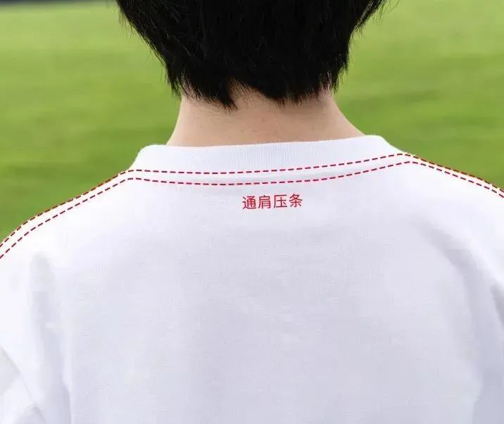 肩到肩整条缝制,既能防止领口变形和肩部坍塌,也可以提高领肩部分的穿着舒适度。
