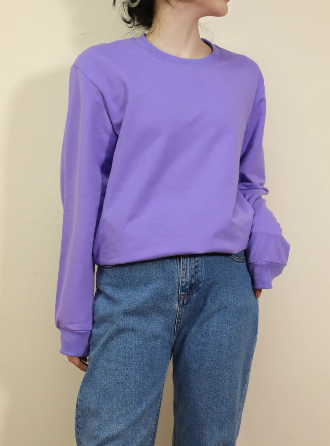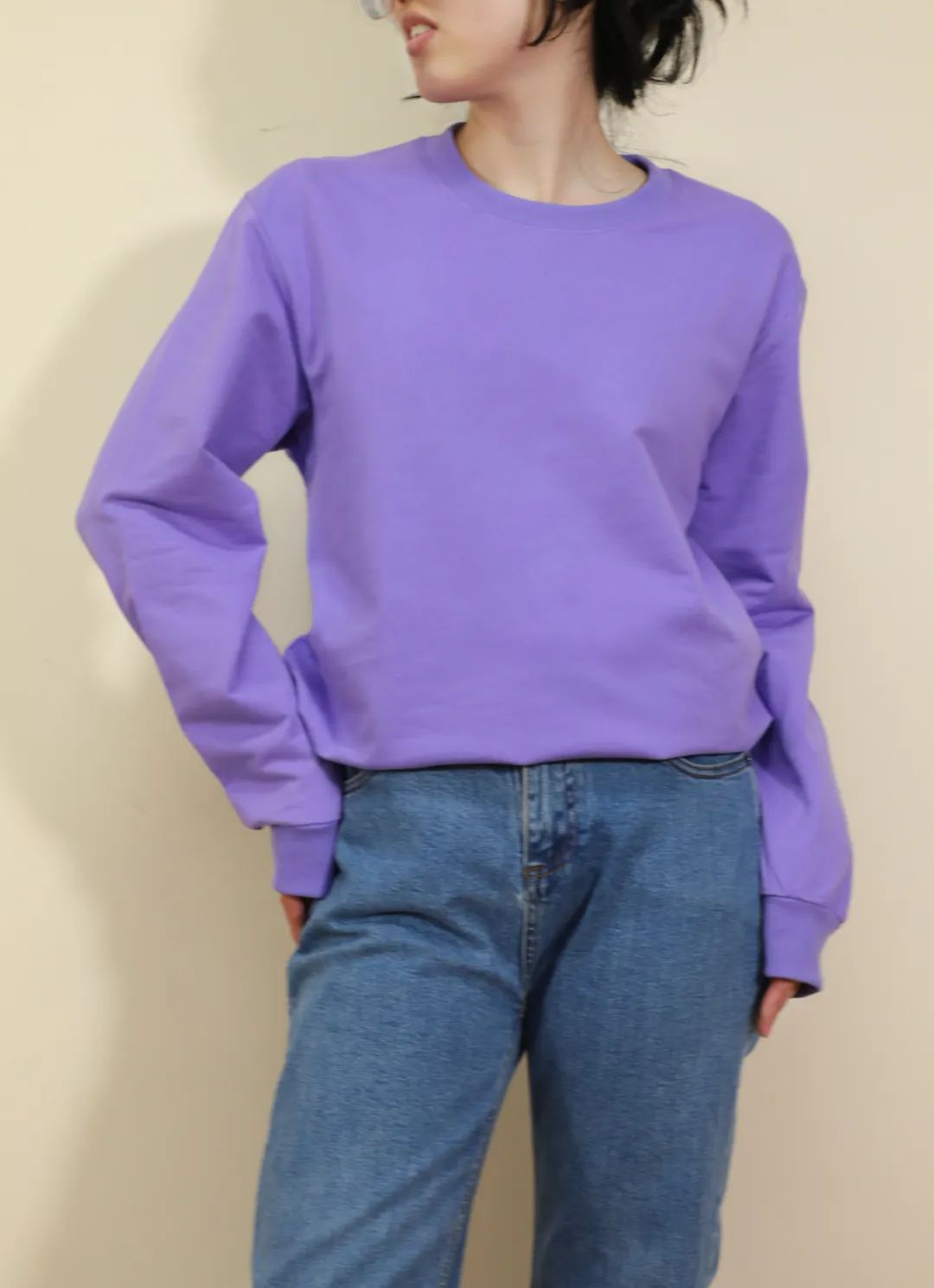 紫色显白又衬肤,上身立马显得整个人活泼有活力,叠穿外套、搭配长裤,紫色卫衣增添了一份女性化的柔美。