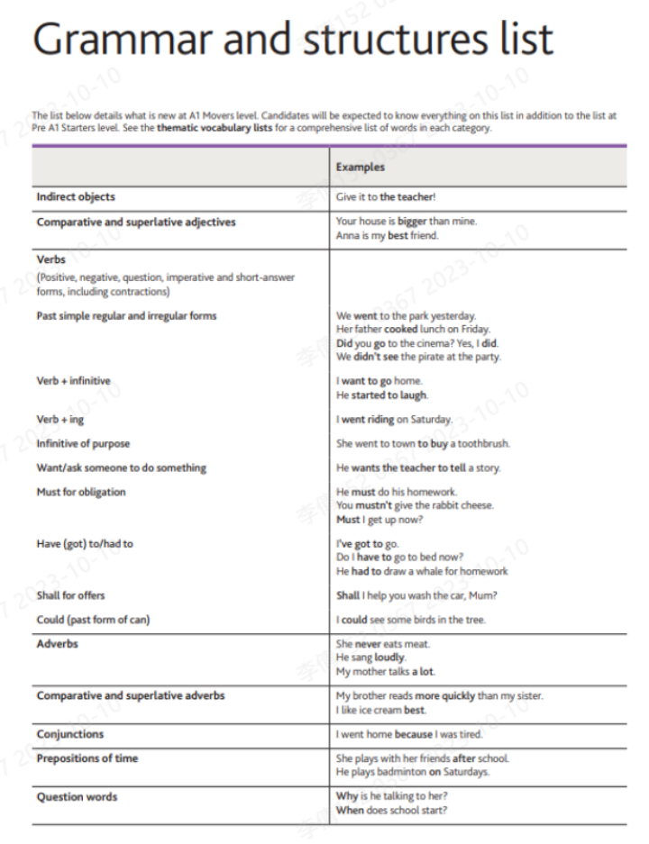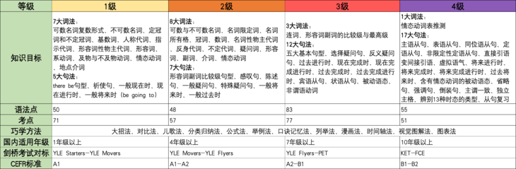 剑桥通用五级能力考试,其中第1、2级也就是我们常说的KET/PET,也都有对于语法知识的明确掌握要求。