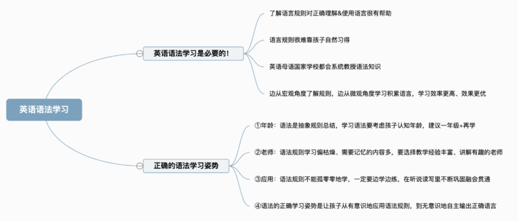 首先,我们讲了语法是对『语言使用规律的总结』,是偏抽象的规则学习,一定要综合考虑孩子的认知和学习能力再加入语法内容的学习。