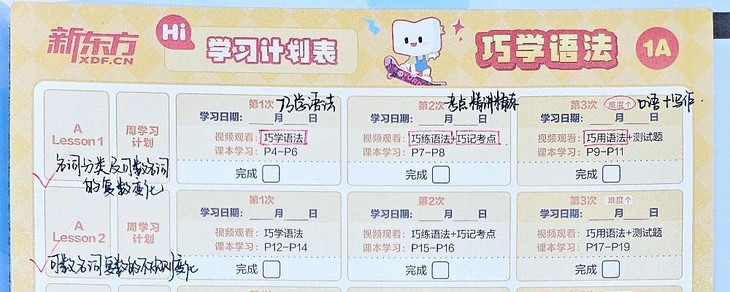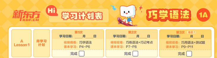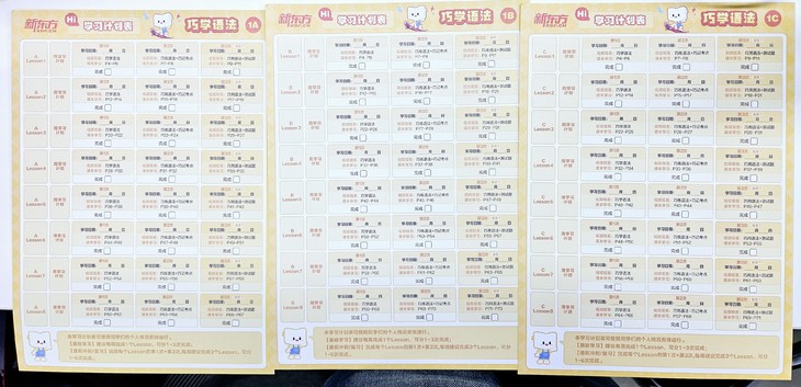 每个语法课程盒子里都配有三张学习计划表和三本教材,每一张计划表对应一本教材的学习,非常有仪式感~