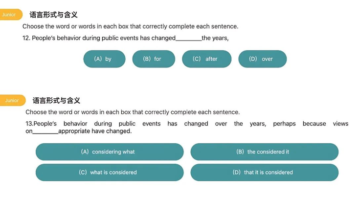 哪怕像国外通用的剑桥考试、小托福等对于写作和口语输出的准确性都是有非常严格要求的。例如,小托福甚至是会单独考语言形式和含义(Language Form & Meaning),这个Language form考查的就是语法知识点。