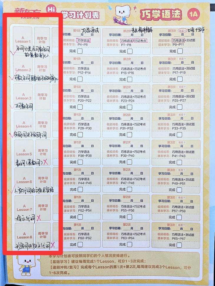 到这里,第一步确定要学的课次就完成了✅,每个孩子都可以根据自己当下的学习情况和学习需求制定好最适合自己的学习计划~