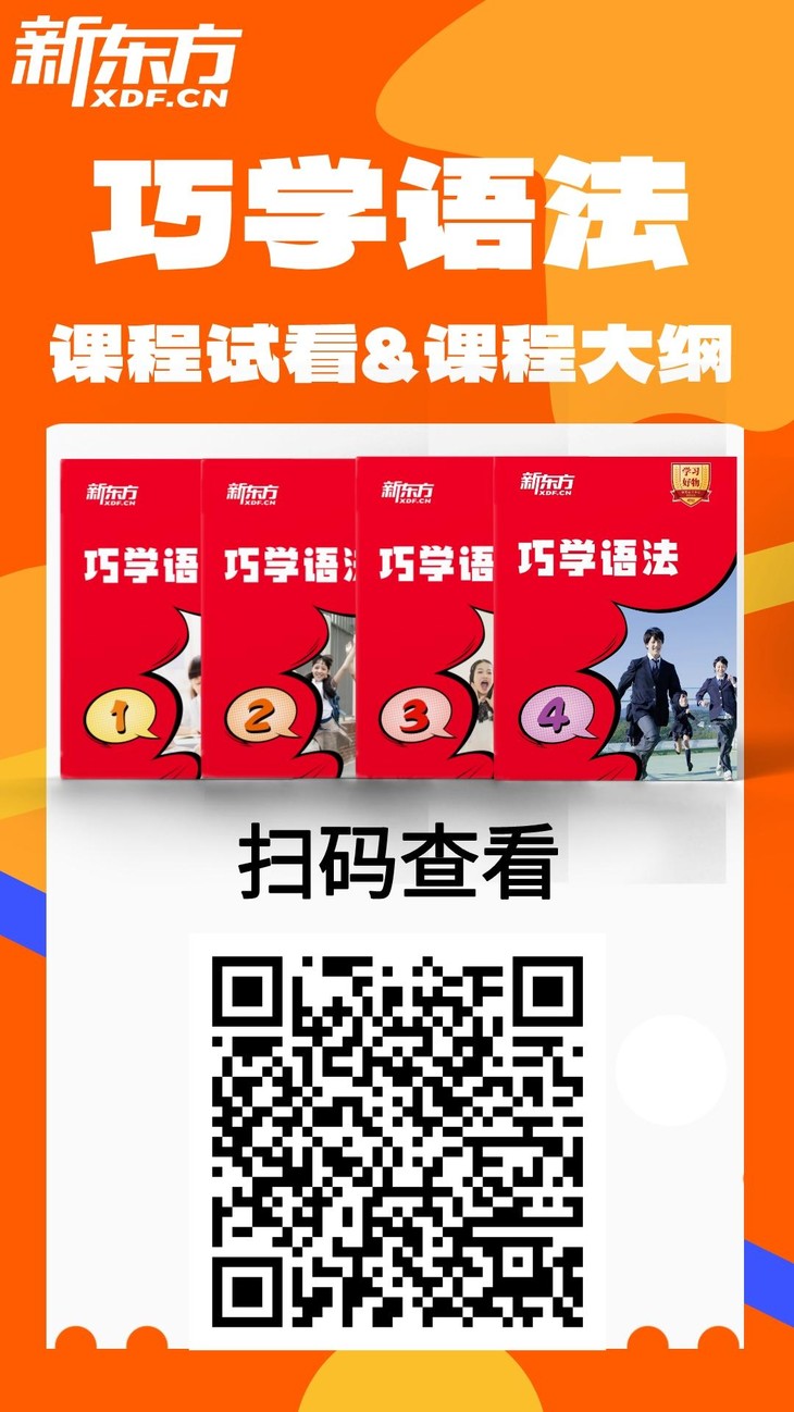 首先,建议大家都扫码领取一下这套新东方巧学语法课程的详细课程大纲,扫码可查看课程大纲,长按可以保存图片。