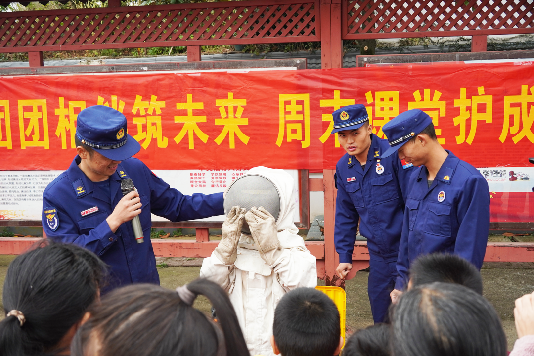 △孩子们在实际消防演练中学习消防知识