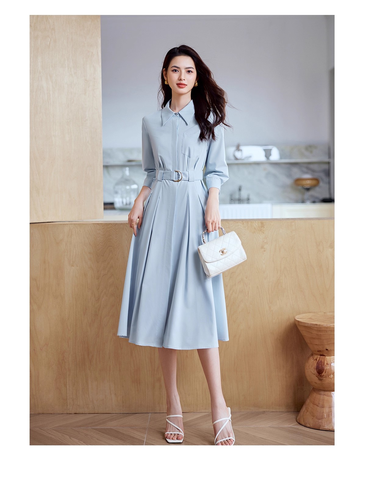 这件衬衫裙像把春日晴空穿在身上~