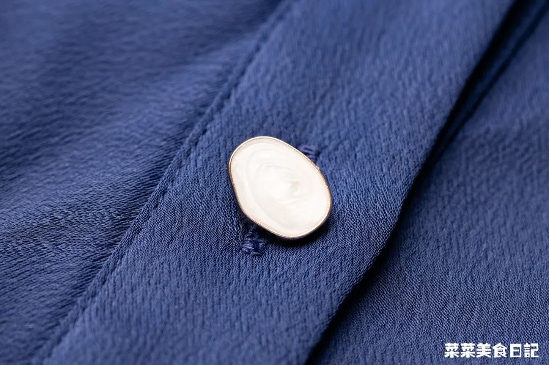 搭载定制的不规则醋酸云母镶金边纽扣,小巧精致,更显精致感。