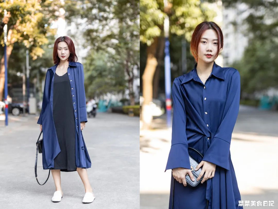 飘带的设计,让衬衫裙飘逸又灵动,时髦度大大提高,还丰富了整一件的层次感。