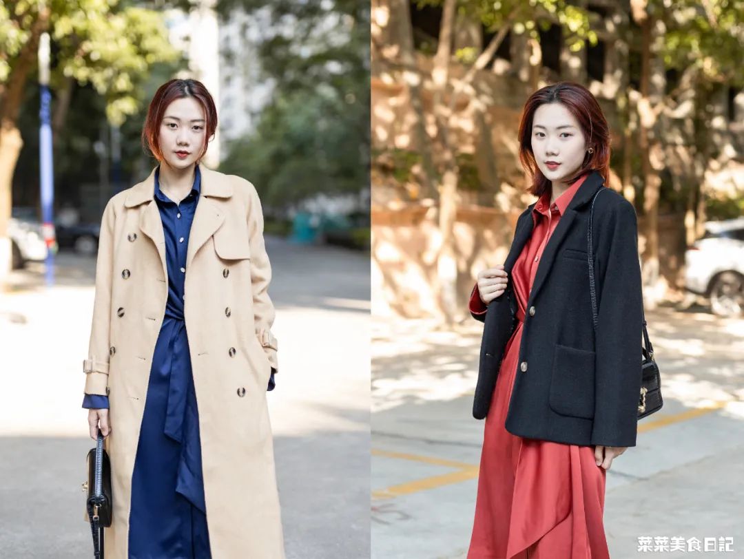 或者内搭长风衣、西装外套、呢子大衣,温柔又有高级感▼