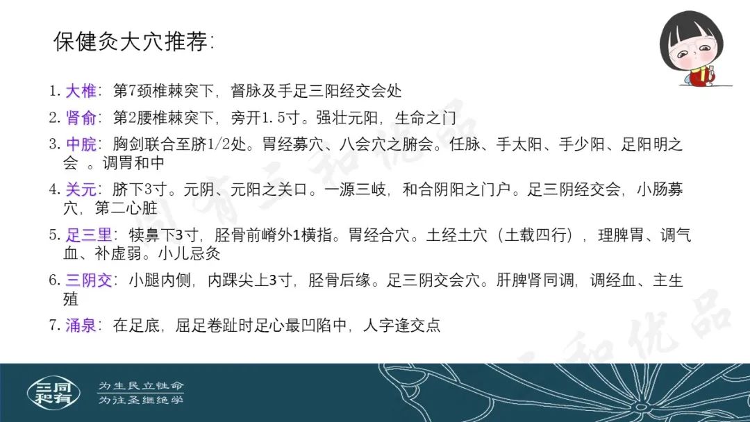 人身上有数以千计的穴位,在艾灸的时候,如何进行选择呢?董晗医生的建议是——守住大穴。董晗医生按先阳后阴的顺序,为大家推荐了7个穴位。