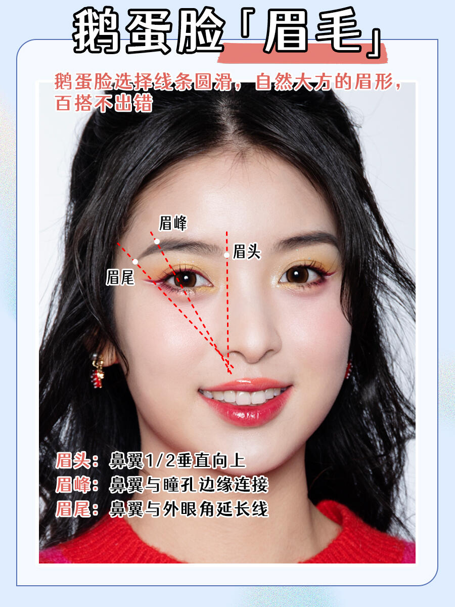 👀鹅蛋脸的眉毛重点:自然大方的眉形,选择线条圆滑的