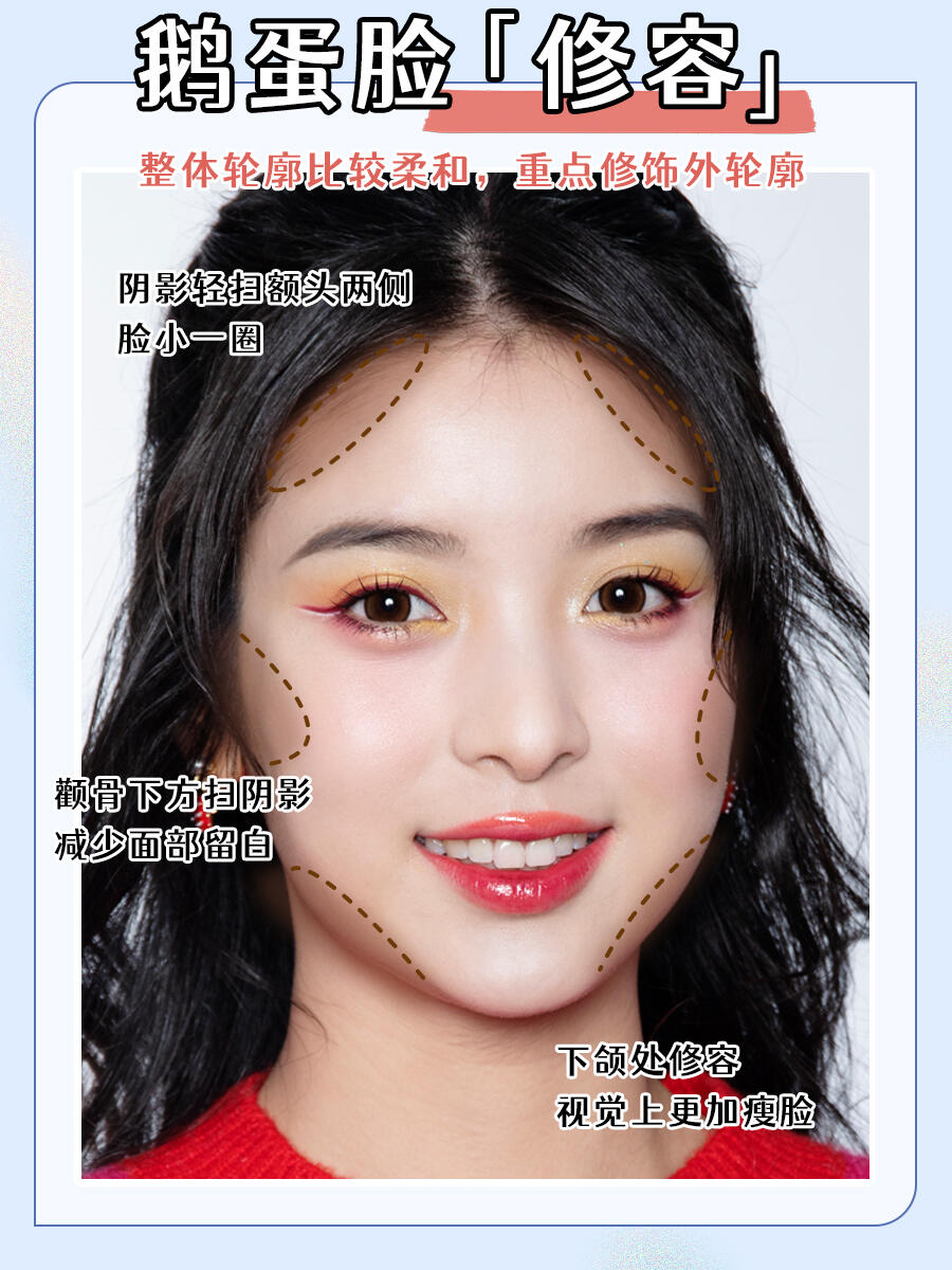 👃鹅蛋脸的修容重点:修饰外轮廓