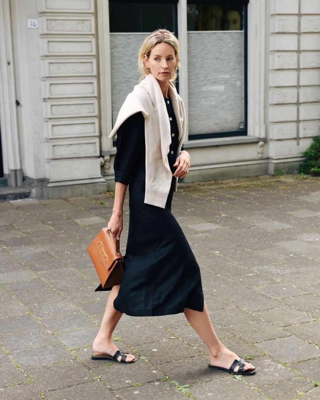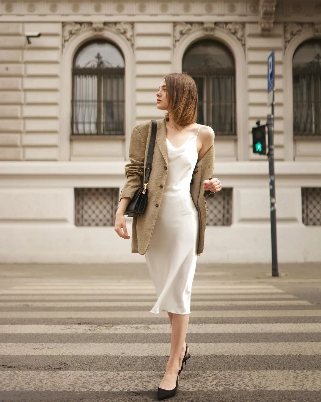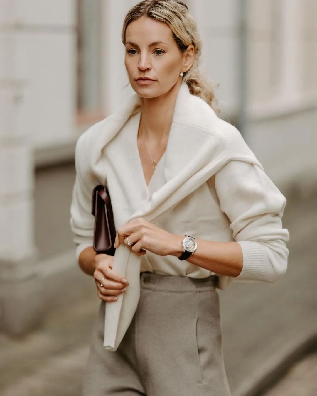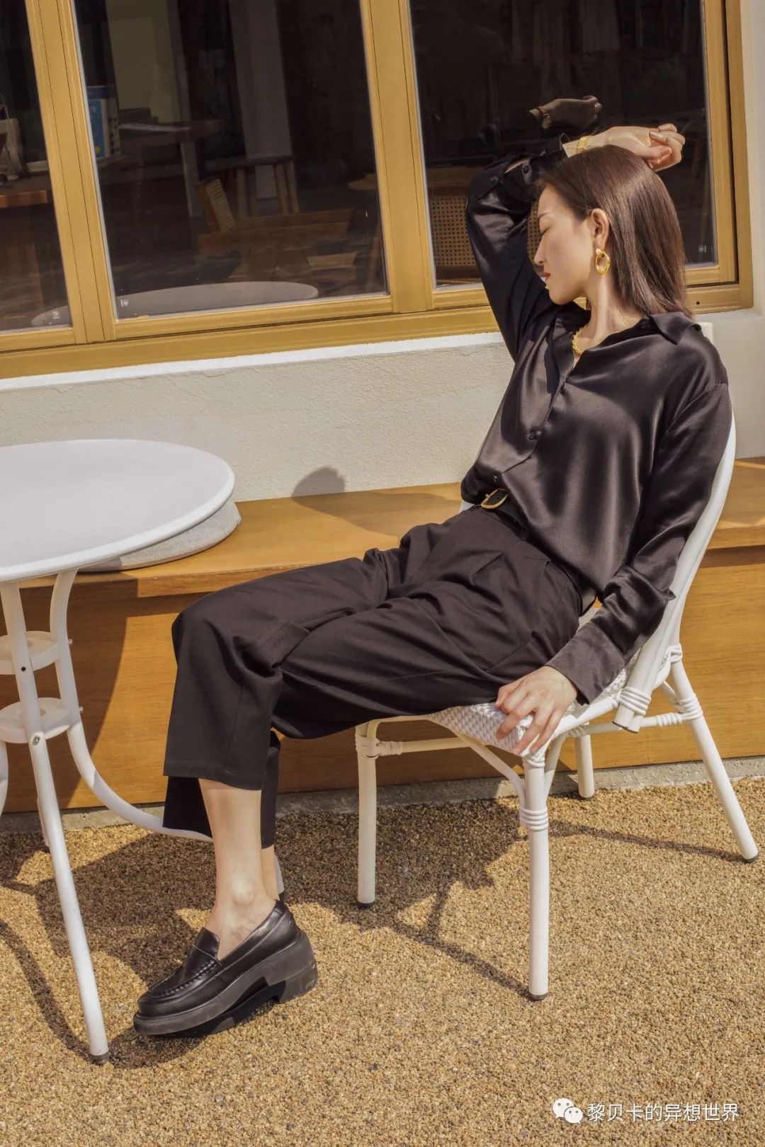 我几乎没有看她穿过有花纹的衣服,大多都是裁剪极简的衣服,黑白灰棕色为主,超耐看。▼