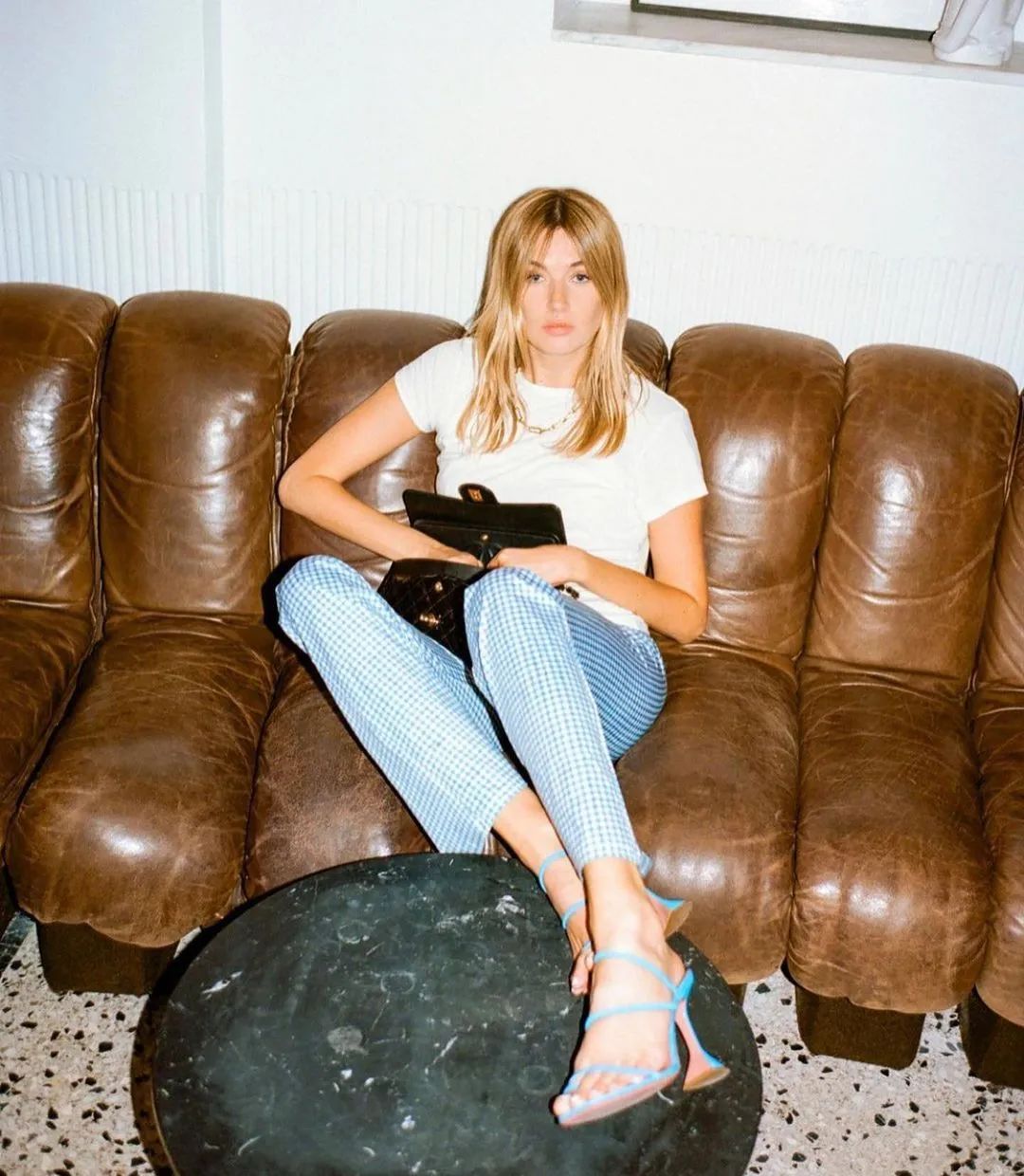 因为厚底鞋带有复古感,她有时候还会搭一些复古配饰。比如戴一顶鸭舌帽,很有九十年代那味儿~▼