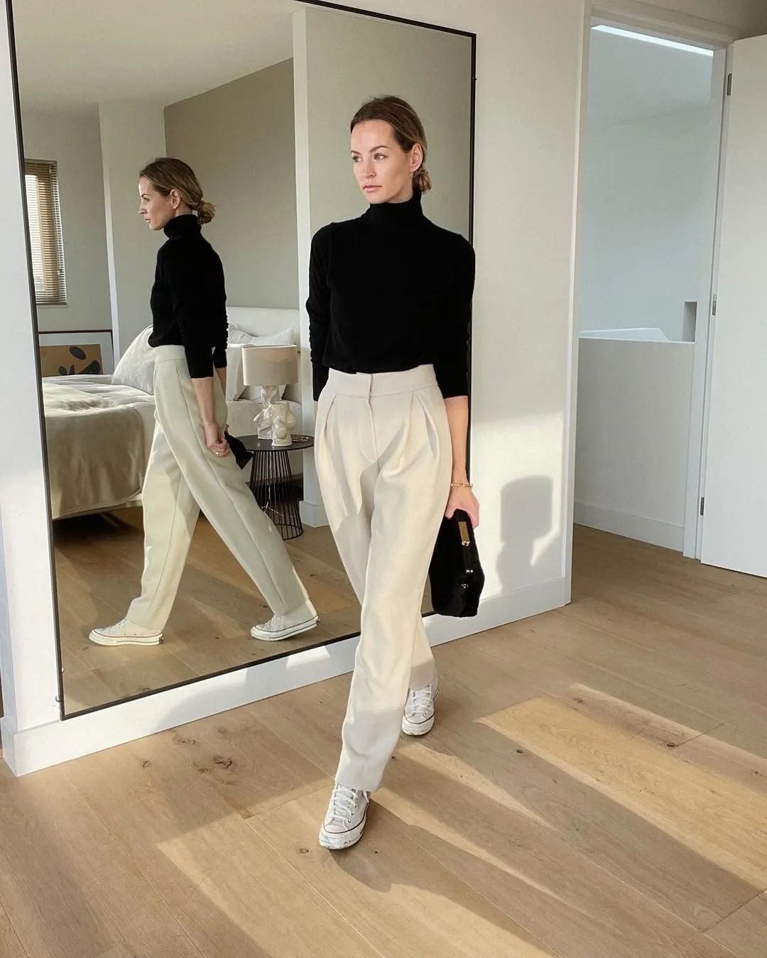 Anouk Yue能穿出干练又轻松的感觉,鞋子的功劳很大!她超爱穿帆布鞋、运动鞋,减弱严肃单品(像西装、衬衫)自带的正式感。▼