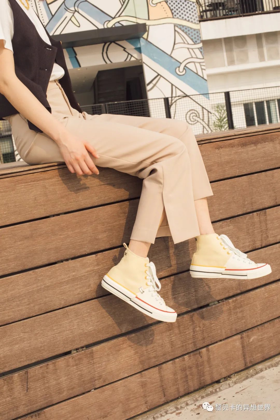 有小伙伴害怕高帮帆布鞋穿着显腿粗,其实现在有很多不露腿就好看的流行搭配。