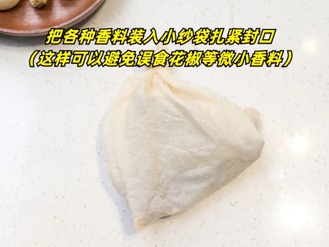 1.为防止香料误食,我们把上图的香料装入纱袋扎紧
