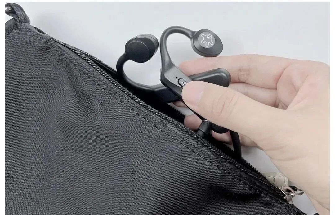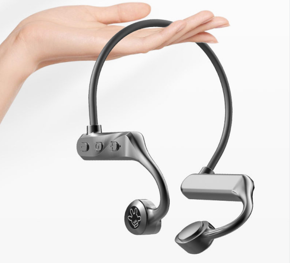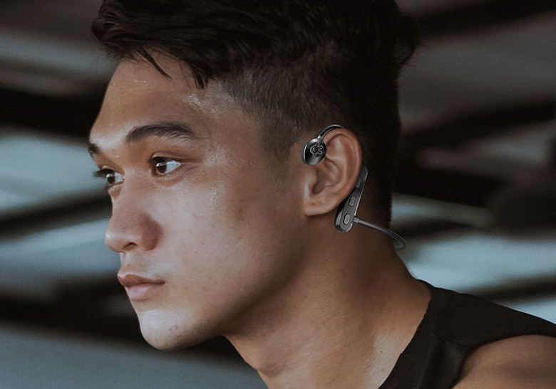 这款耳机采用的是骨传导技术,不用入耳就可以听音乐。