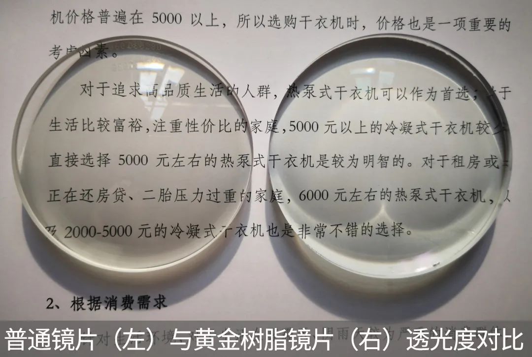 黄金树脂做的镜片和普通镜片区别在哪里呢?我们通过一些实验,具体来看一下👇: