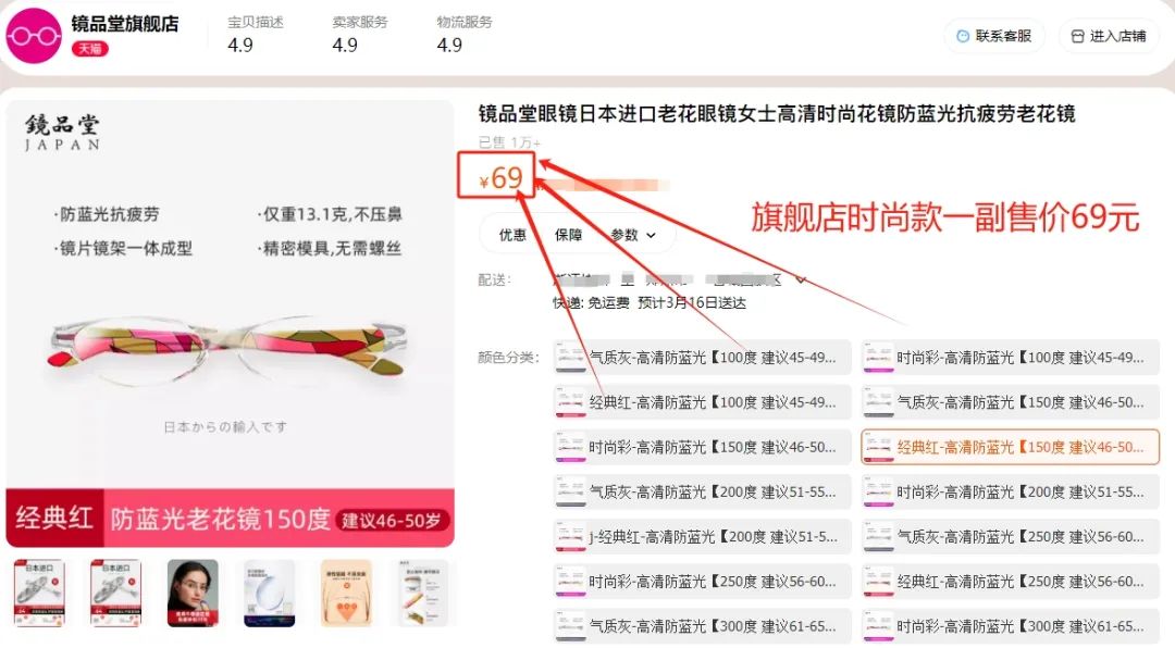 *图片来源镜品堂旗舰店店铺截图