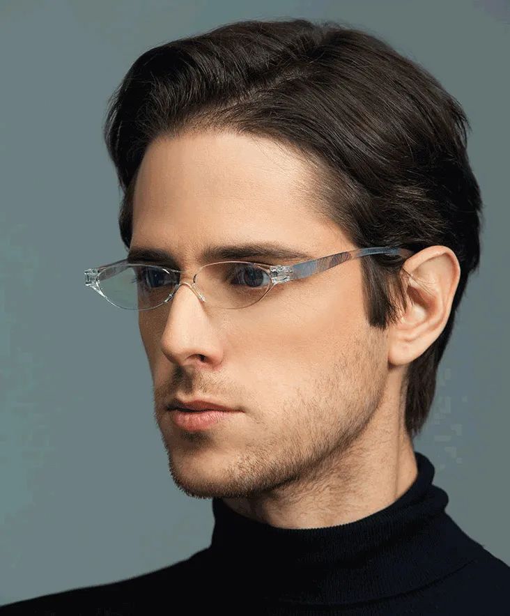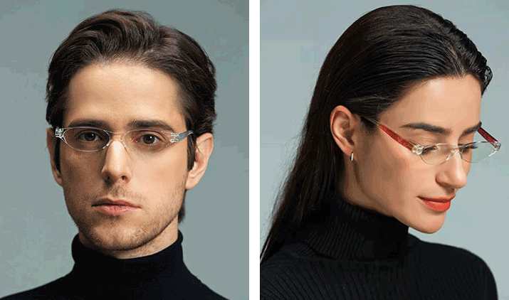 👉一个是经典款:造型轻柔简约,适合喜欢素雅风格的人或男性长辈佩戴!镜架采用记忆塑胶钛,有着超强的韧性和回弹力,镜腿可外扩180度,适合宽窄胖瘦等多种脸型!
