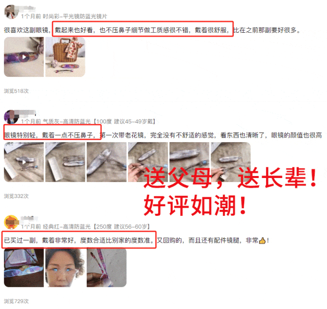 不管我们有没有陪伴在他们身边,都可以为爸妈长辈们,选一副质量好、清晰度高、耐摩擦、不易折、佩戴体验超级好的镜品堂老花镜!