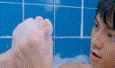 也可以各躺在浴缸的两边,用脚轻轻地撩拨他,可以用脚尖一路从从小腿、大腿滑到小弟弟,再加上一点暗示诱惑的眼神,接下来就看你们的了。