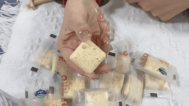 平时我加班累的时候,也会吃几包【干奶豆腐】,配上一杯奶茶,酥脆口感和浓郁奶味带来的快感,让人立刻能量满满!
