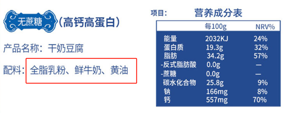而且没有蔗糖,更没有反式脂肪酸,【干奶豆腐】在满足身体所需能量的同时,还不会造成任何负担。