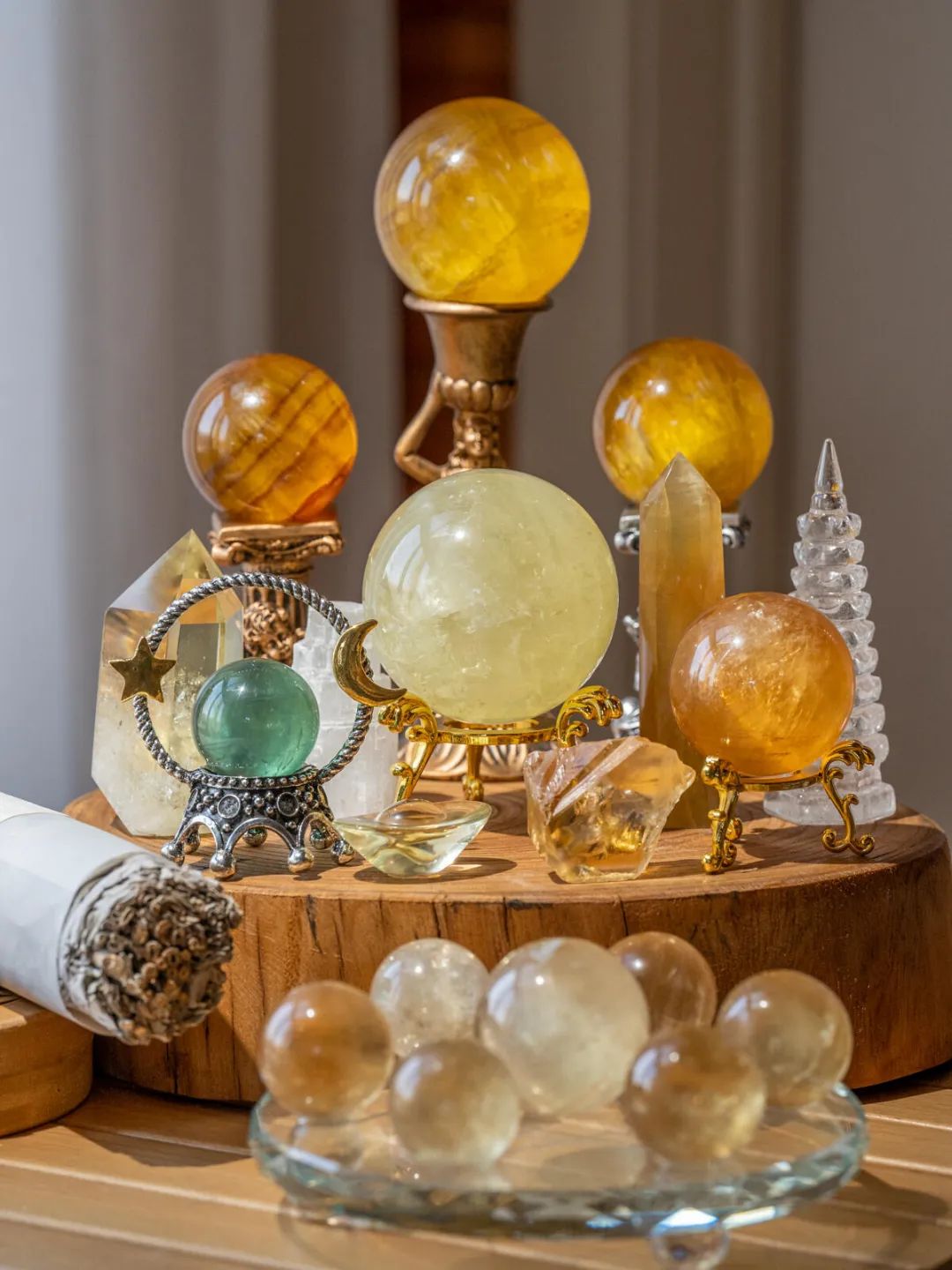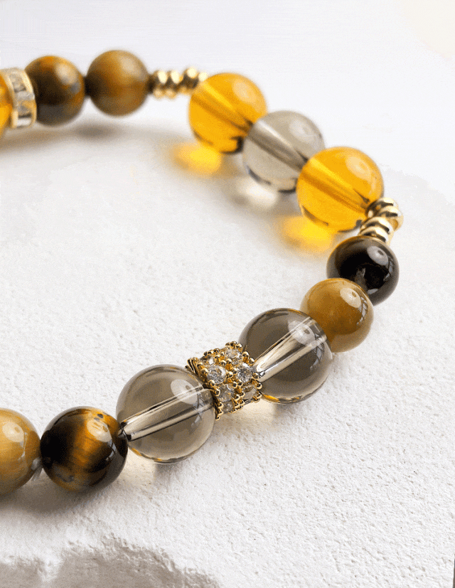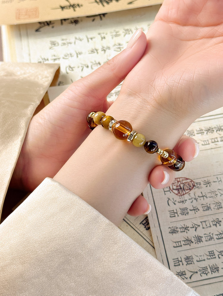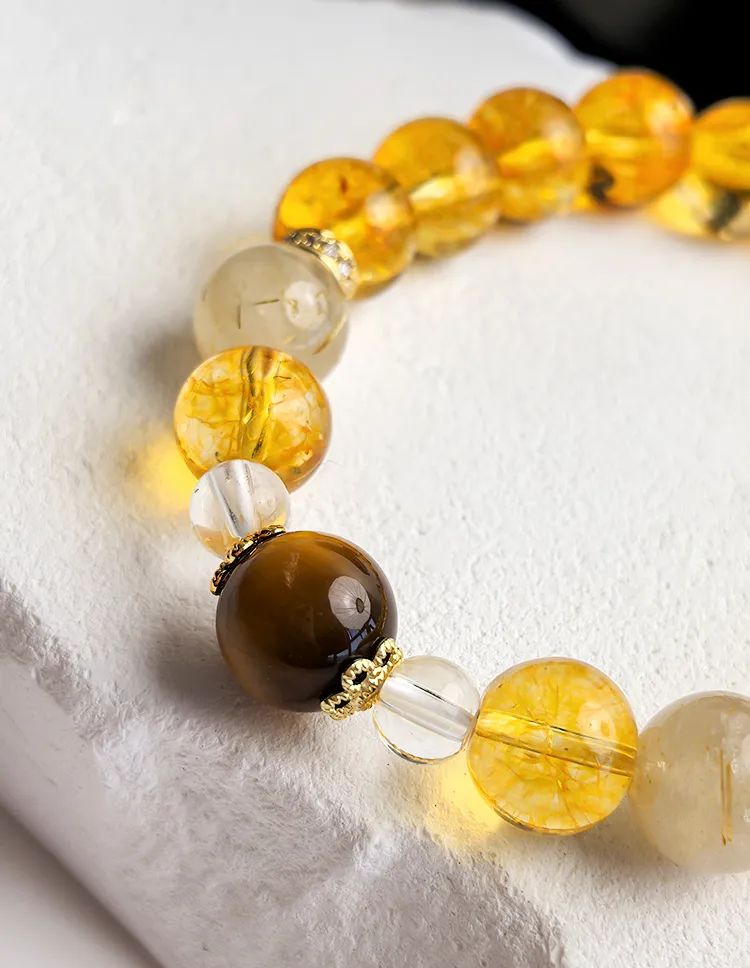 高品质天然黄水晶+金发晶+黄虎眼石+金虎眼石+和田玉+蜜蜡+锆石+18kgd镀金的设计。