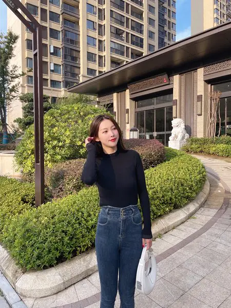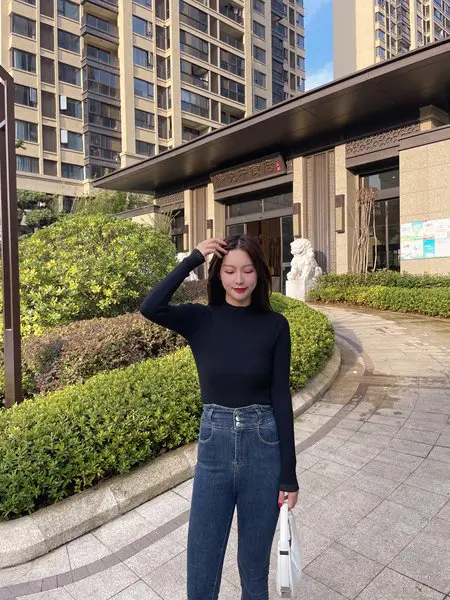 黑色穿着很显瘦,布料也很舒服,配裙子裤子都很百搭,不会有扎身体的感觉,秋天穿一件刚刚好~冬天可以当一件百搭的内搭。
