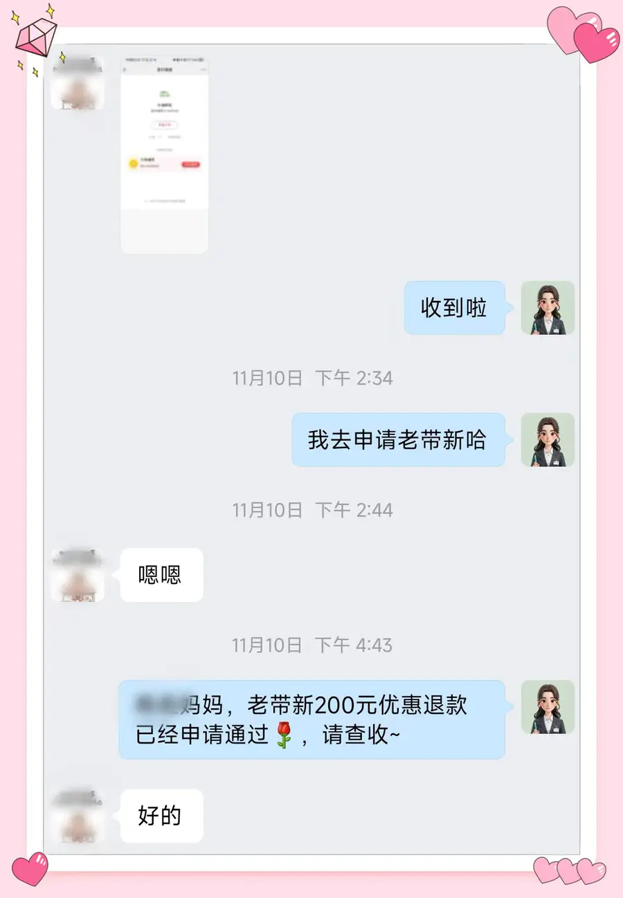 4. 课程老师将为双方分别申请退还200元至各自微信钱包。