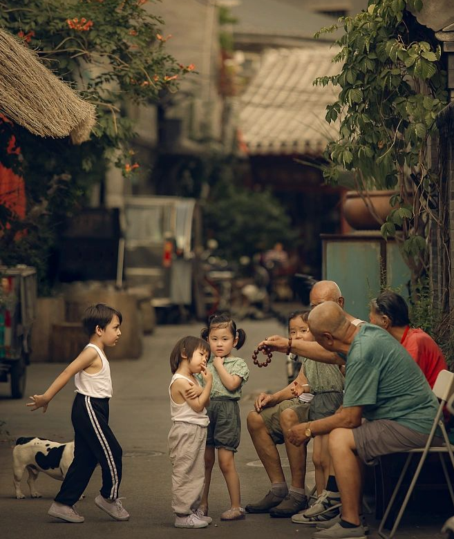 就着团圆饭,爷爷和爸爸会喝着酒谈天说地,奶奶和妈妈安静地看着,聊着家常。而小时候的我们会一起玩闹,玩累了,就直接依靠在爸爸妈妈、爷爷奶奶的身边睡去,那时每个中秋的夜晚,在我的记忆里总是这样鲜明又温暖。