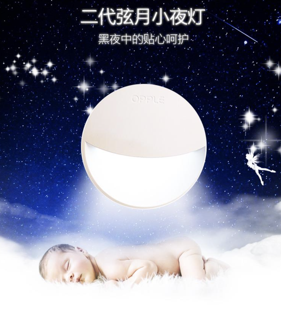 欧普照明弦月小夜灯,双反射柔光,光敏控制,天黑人来亮灯无需反复插拔,向下发光低眩光,直下式不影响睡眠不伤眼,舒适体验每一晚。
