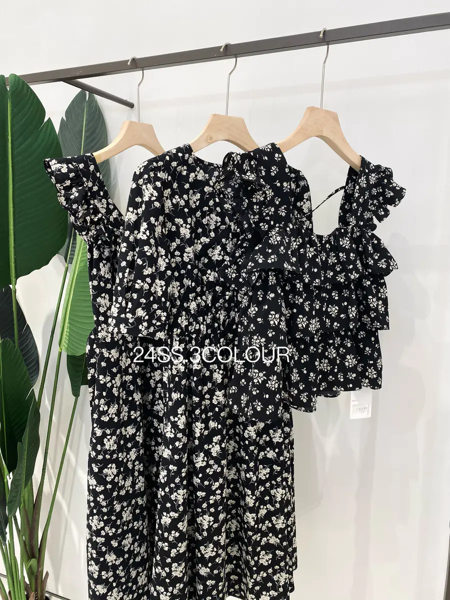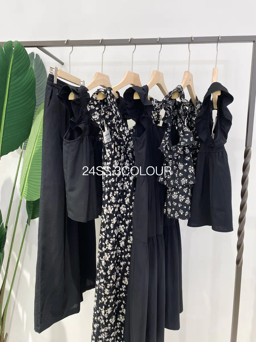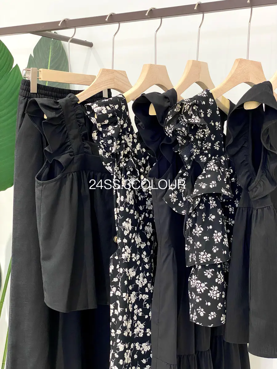首先给大家推荐一组黑白碎花款飞飞袖单品