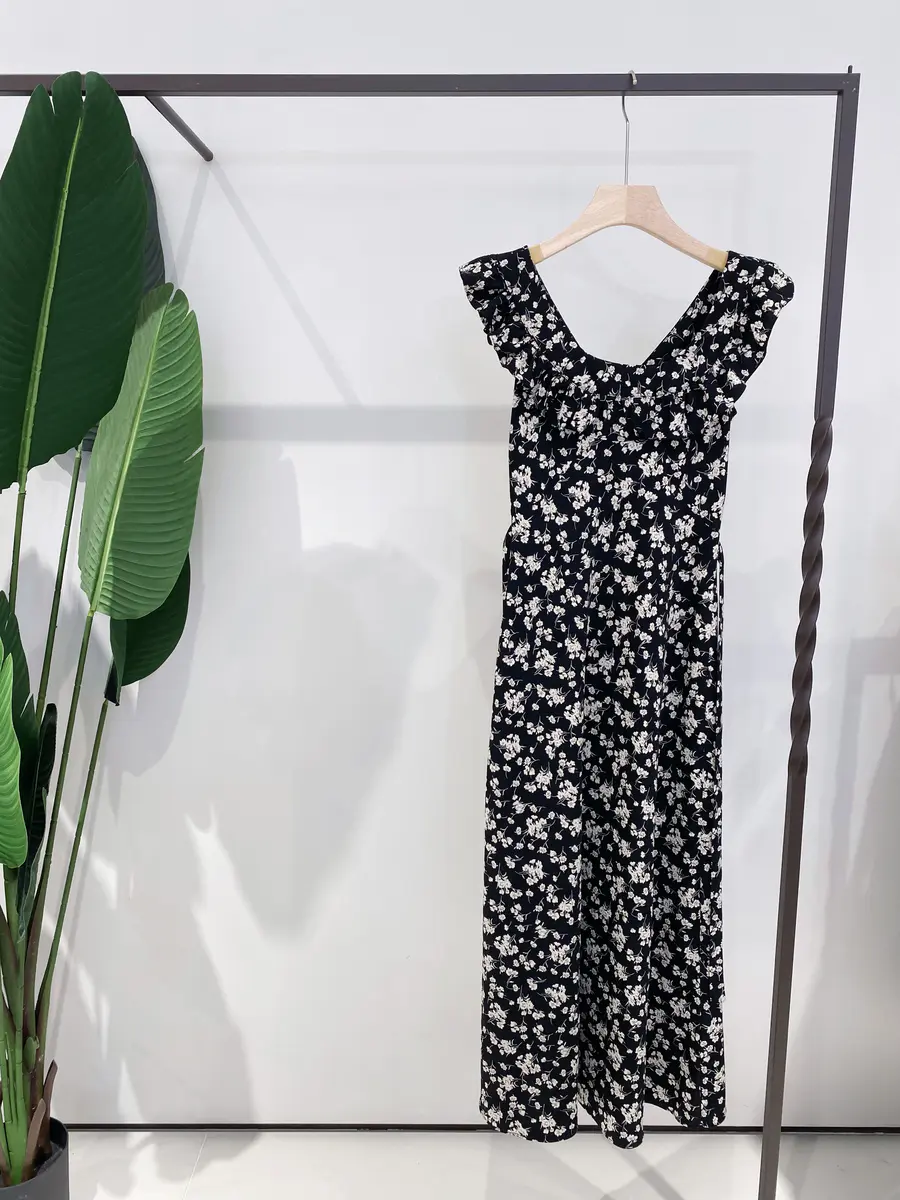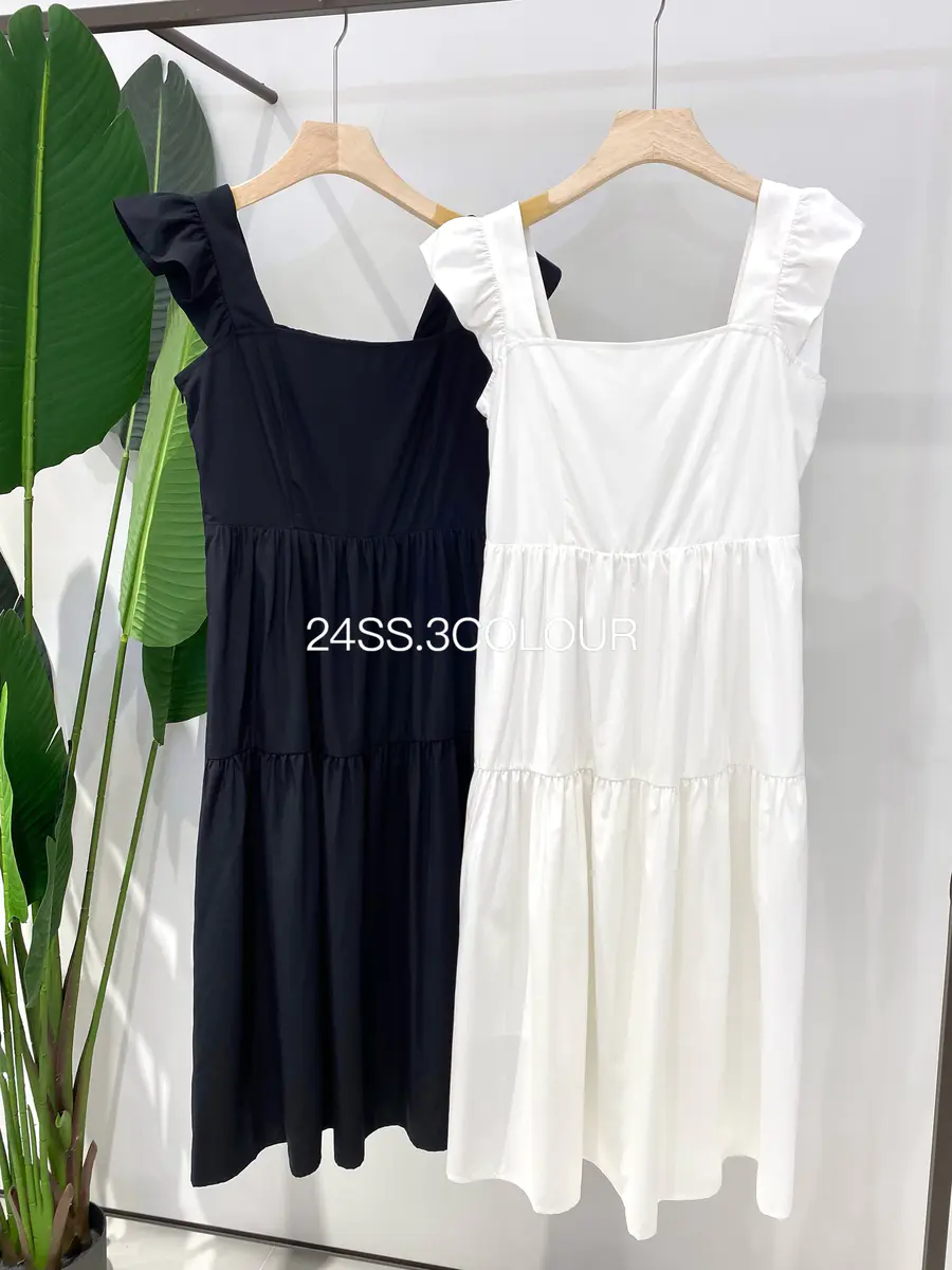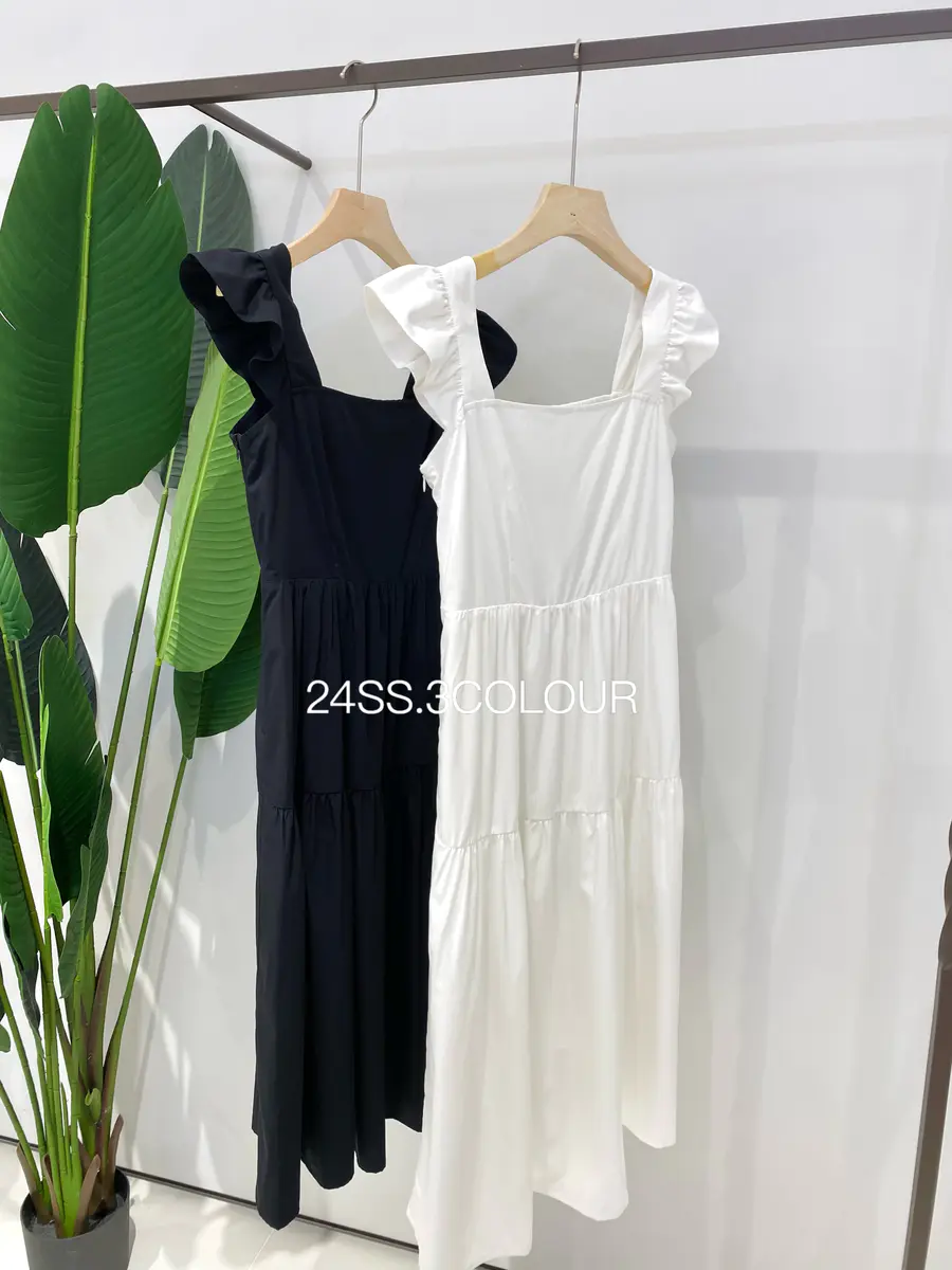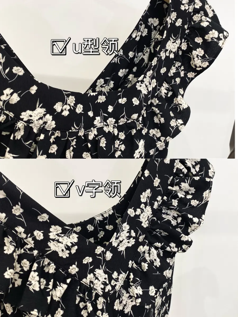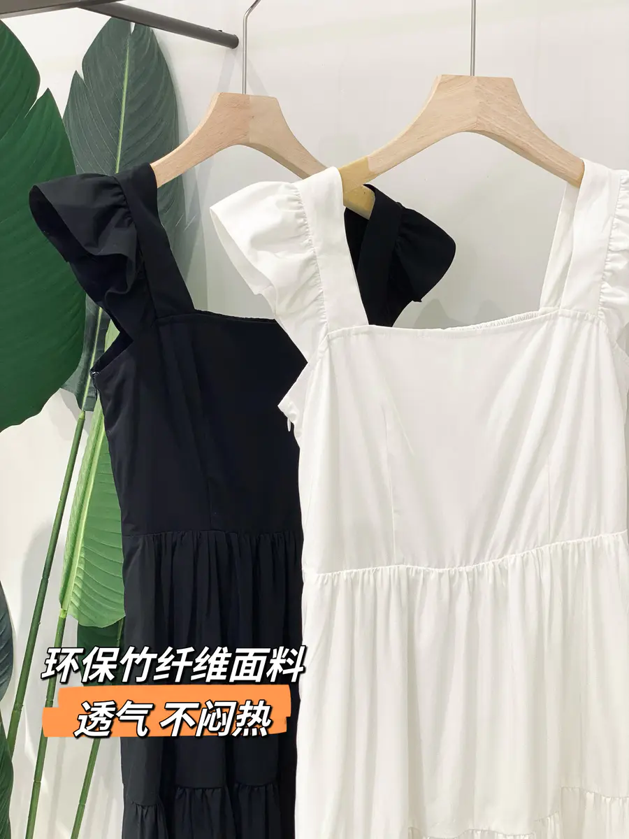 如果不喜欢碎花款式的姐妹,可以关注一下这个纯色的飞飞袖连衣裙,经典的黑白色系,可以成为衣橱的常青款式