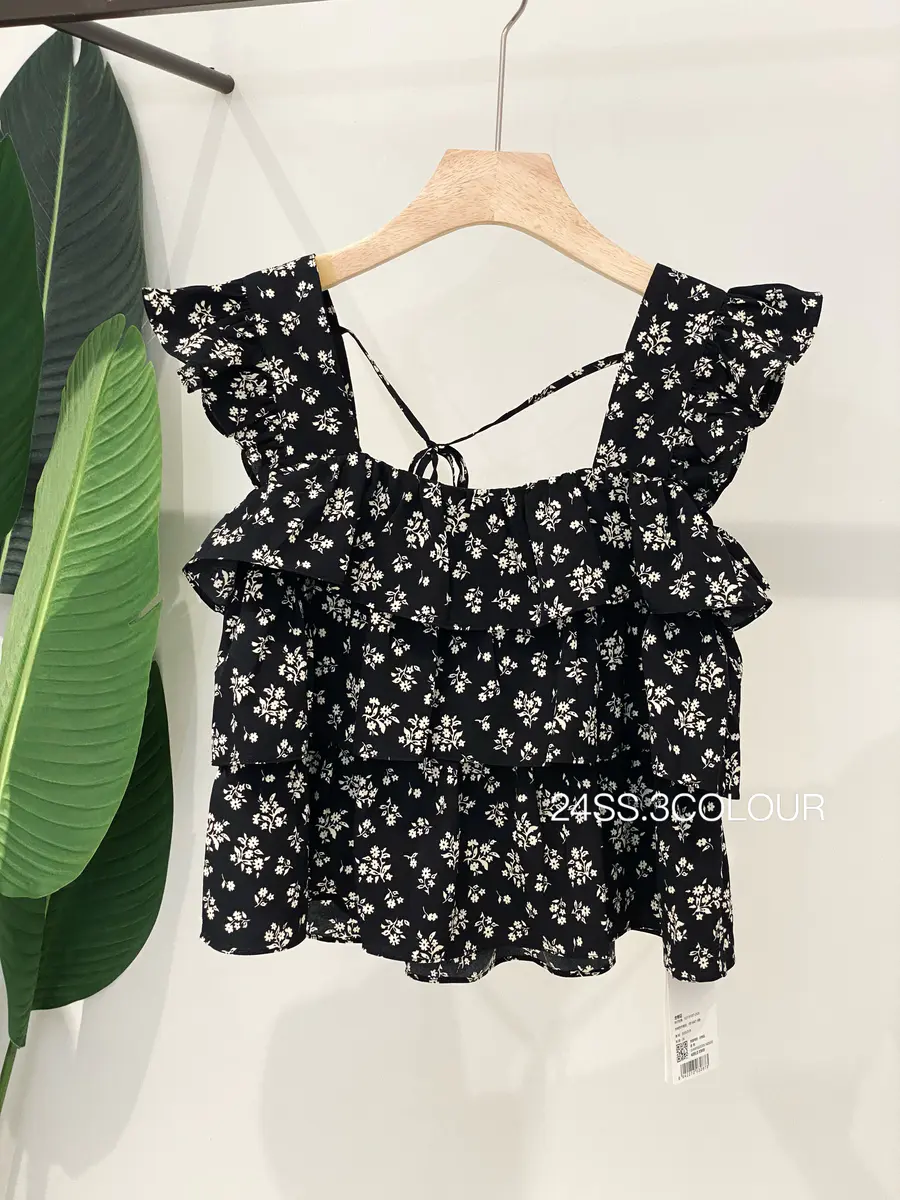 其次是这款碎花飞飞袖小衫,区别于其他娃娃衫的设计,这款小衫采用的是层叠的蛋糕边设计,层层叠叠更加浪漫飘逸,但是建议胸围比较大的姐妹甚入哦,因为层次感比较多,所以会更加膨胀一些~