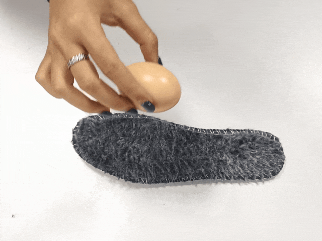 你看,我们从高空扔下1颗鸡蛋,这颗鸡蛋回弹在鞋垫上竟然没有碎,反倒还能弹起!