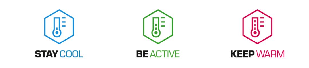 Keep Warm:红标,保暖与排汗技术,适用于寒冷的运动环境。