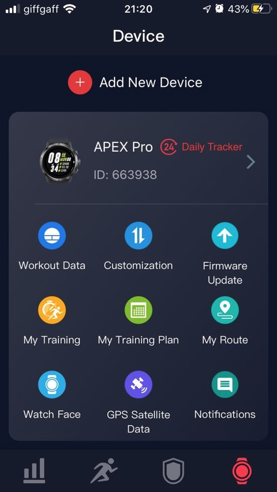 就是关于手表了,所有较为复杂的设置都可以在这里实现。比如说更换主页(表盘)、设置训练计划、导入路线、通知等等。手表的操作说明也可以在这个板块找到。而我之前提到的设置训练数据就是这个版块里的第一项。
