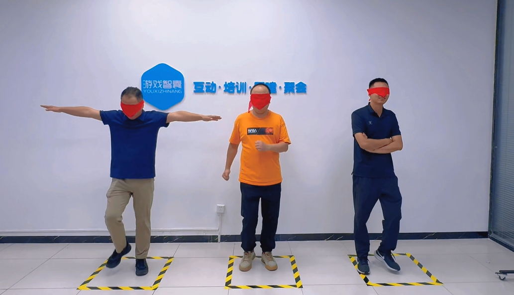 游戏介绍:每组选派 1 人蒙眼站指定圆圈内,60 秒内原地踏步,需保持不踏出圈外,中途出圈即淘汰,全员围观监督呐喊,欢乐感十足,轻松点燃年会热闹氛围~