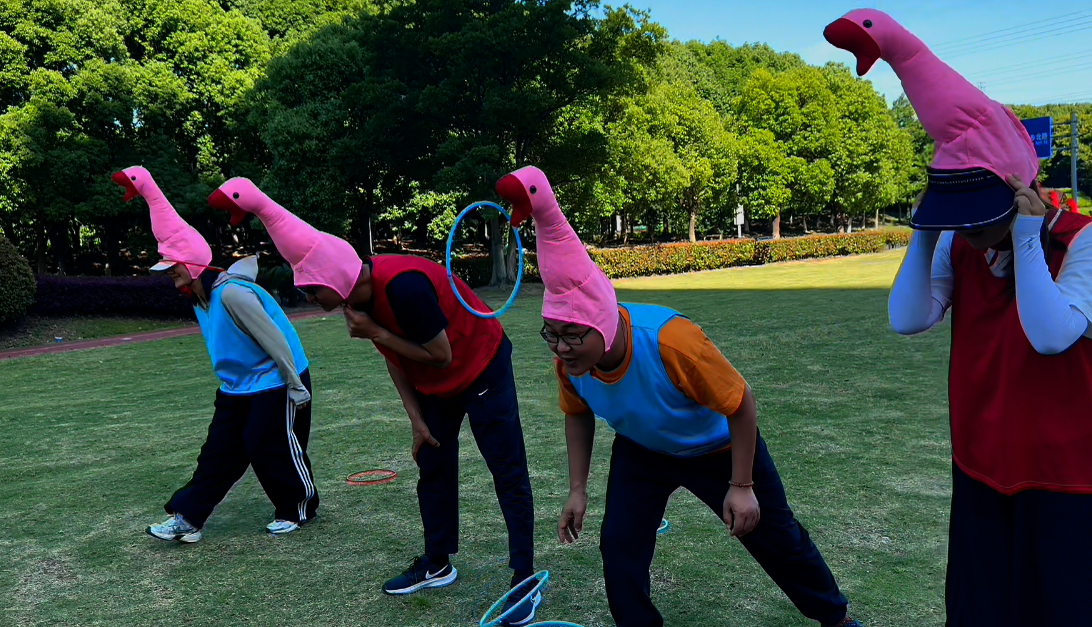 游戏介绍:每组选派 1 人戴大鹅头套站指定区域,其余队员轮流用套圈尝试套中 “大鹅”,60 秒内套中次数多的组获胜,全员围观爆笑打 call,轻松点燃年会欢乐氛围~